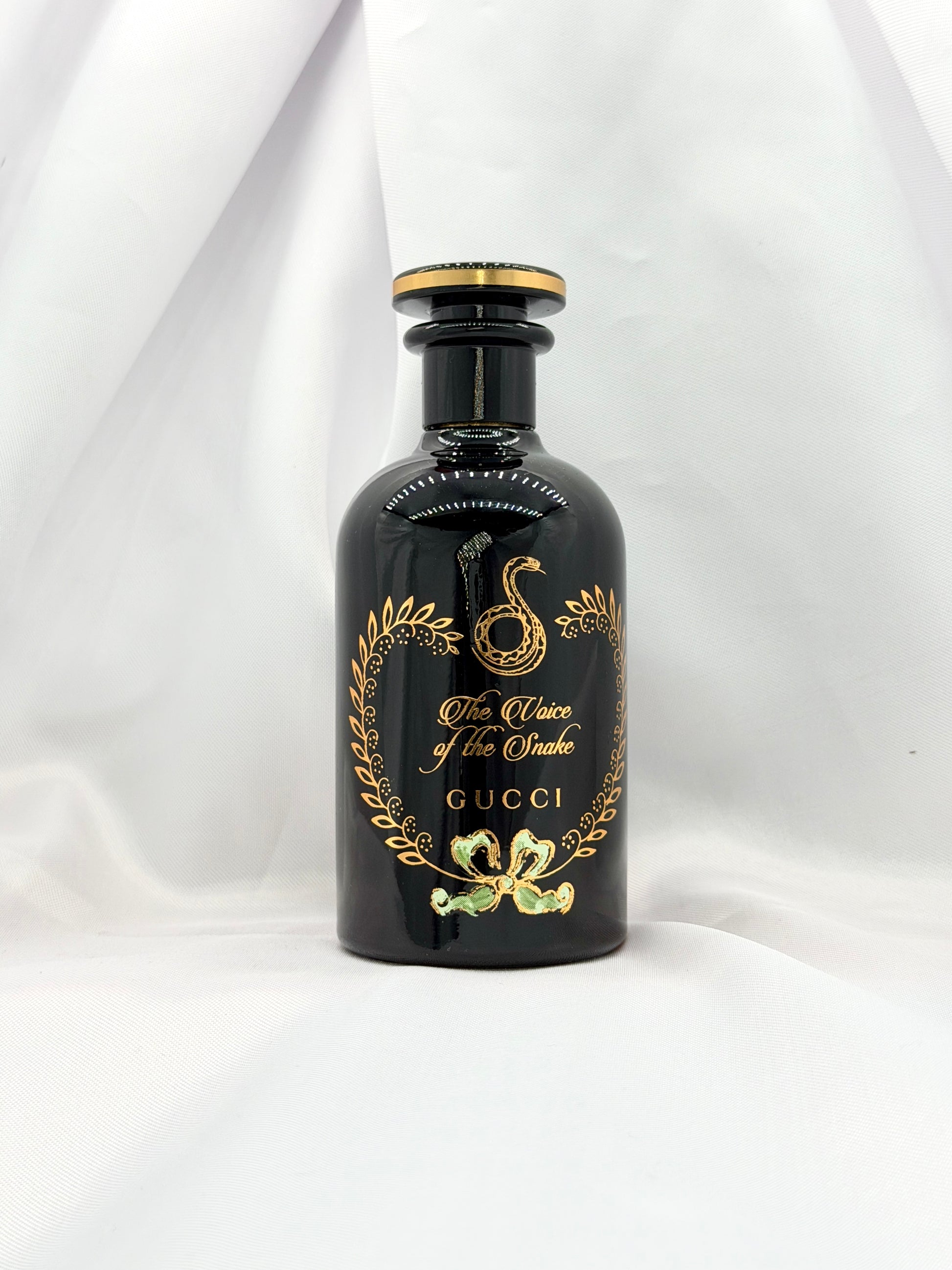 Gucci The Voice of the Snake delivers smoky oud richness with spicy saffron and earthy patchouli—deep, confident, and unforgettable.