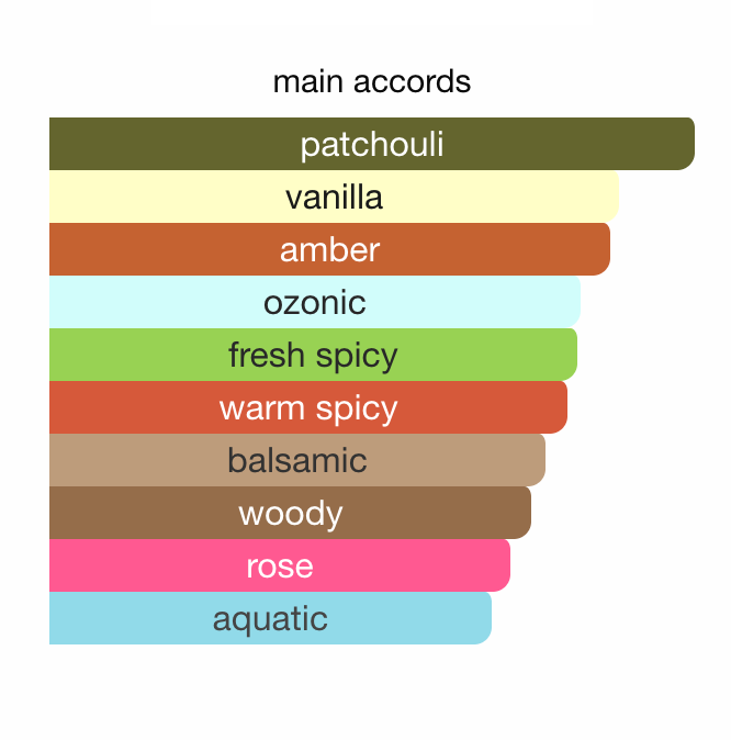 Base Notes: Vanilla, Ambergris, Bourbon, Oud nuances / resinous woods
